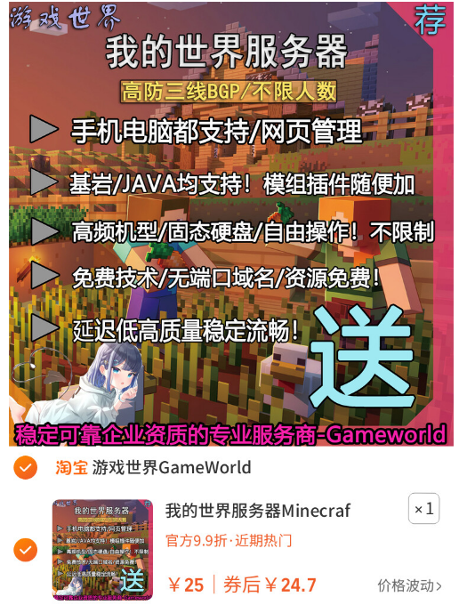 我的世界服务器Minecraft服务器MC服务器开服出租用多线流畅稳定