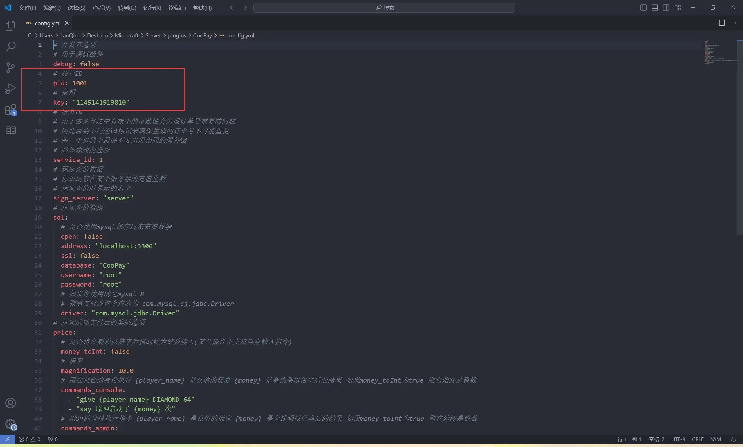 下载Coopay插件 拖入服务端Plugins文件夹